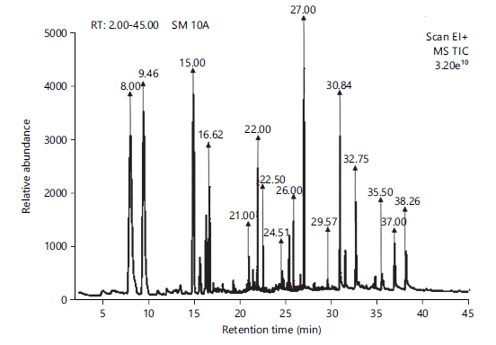 | S/N | Retention time (Min) | Compound detected | Peak area (%) |